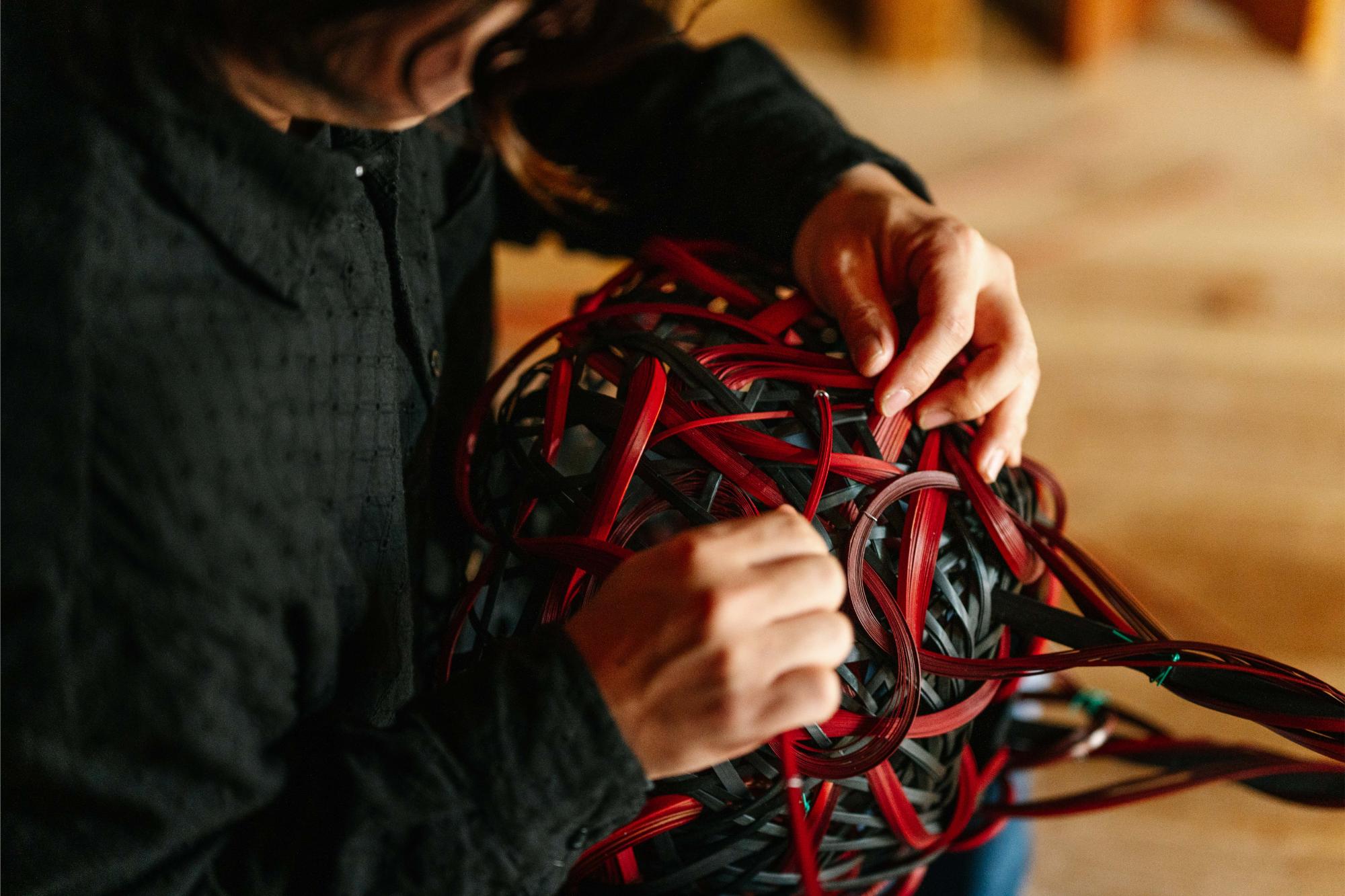 「竹工房オンセ」にてバッグやかごなどの竹製品を製作しながら、自身のアート作品づくりを行い、竹の表現を追求しています。工房では竹の切り出しから素材づくりも担当し、竹職人の新人や若手の架け橋ともなる存在です。