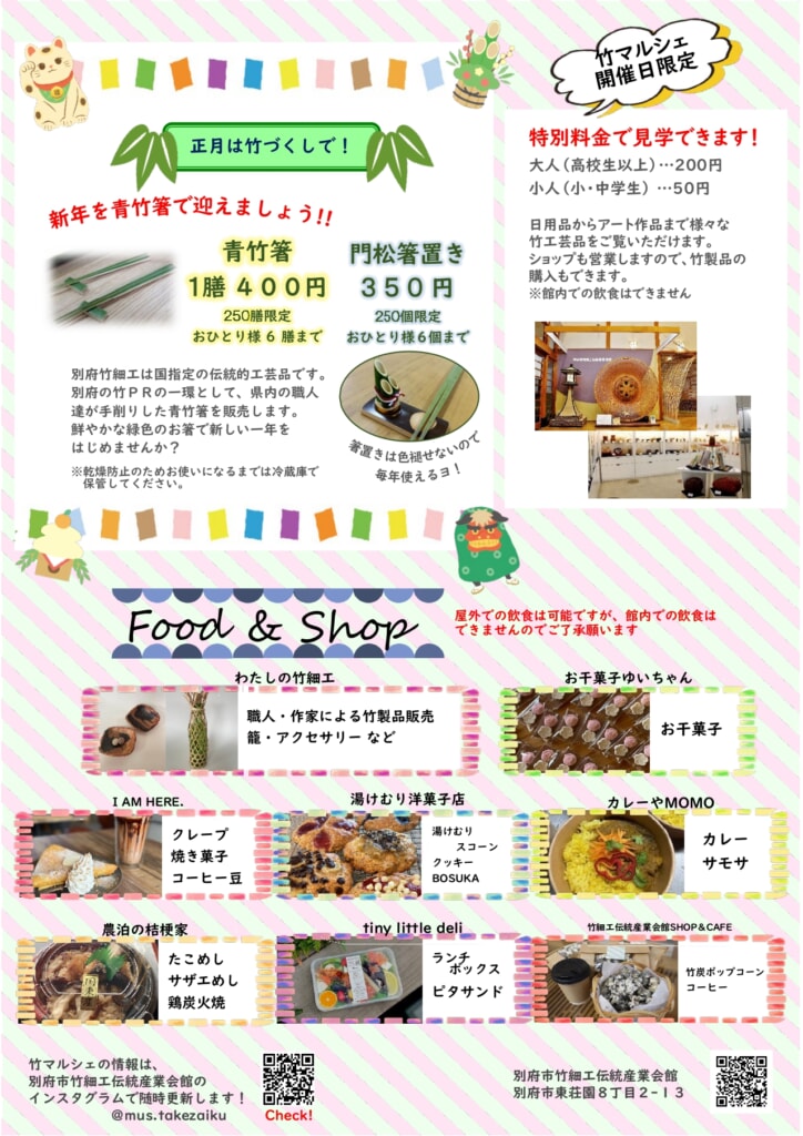 なお当日は終日、特別料金で竹細工伝統産業会館を観覧していただけます。年末最後のイベントにぜひご参加ください!