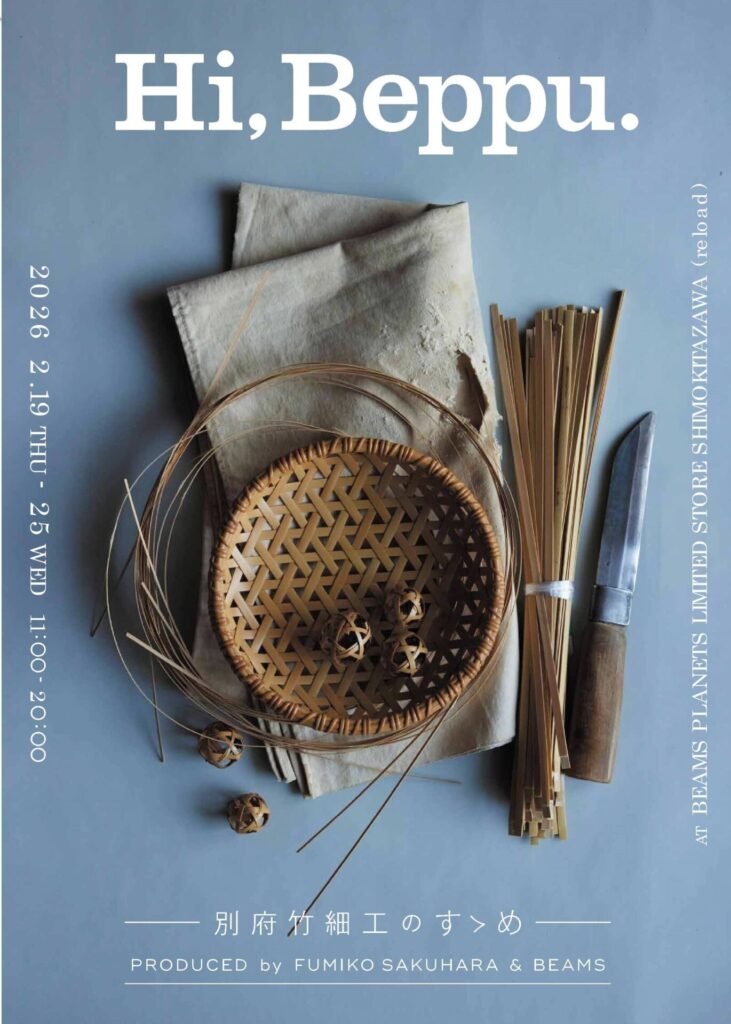 別府の伝統工芸「竹細工」の新たな可能性を表現する展示イベント『Hi, Beppu. ー別府竹細工のすゝめー』を、東京・下北沢の「reload」にて開催いたします。